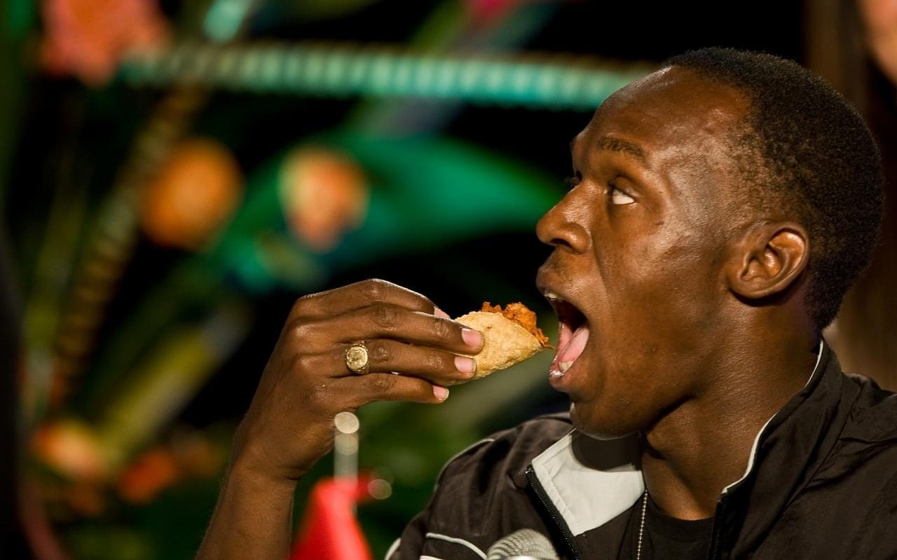 Ямальский легкоатлет, восьмикратный олимпийский чемпион и одиннадцатикратный чемпион мира, имеет весьма странный подход к питанию. Перед утренней пробежкой Усэйн обожает лакомиться наггетсами и крылышками. Помимо этого, спортсмен часто употребляет по утрам рыбу с варениками, бананы и батат. На обед у него – макароны с курицей, а на ужин – рис с горохом и свининой. Диета Усэйна Болта состоит из БЖУ в соотношении 60/30/10. Энергетическая ценность всех его приемов пищи составляет около 5500 ккал при ежедневных тренировках в 3,5 часа.